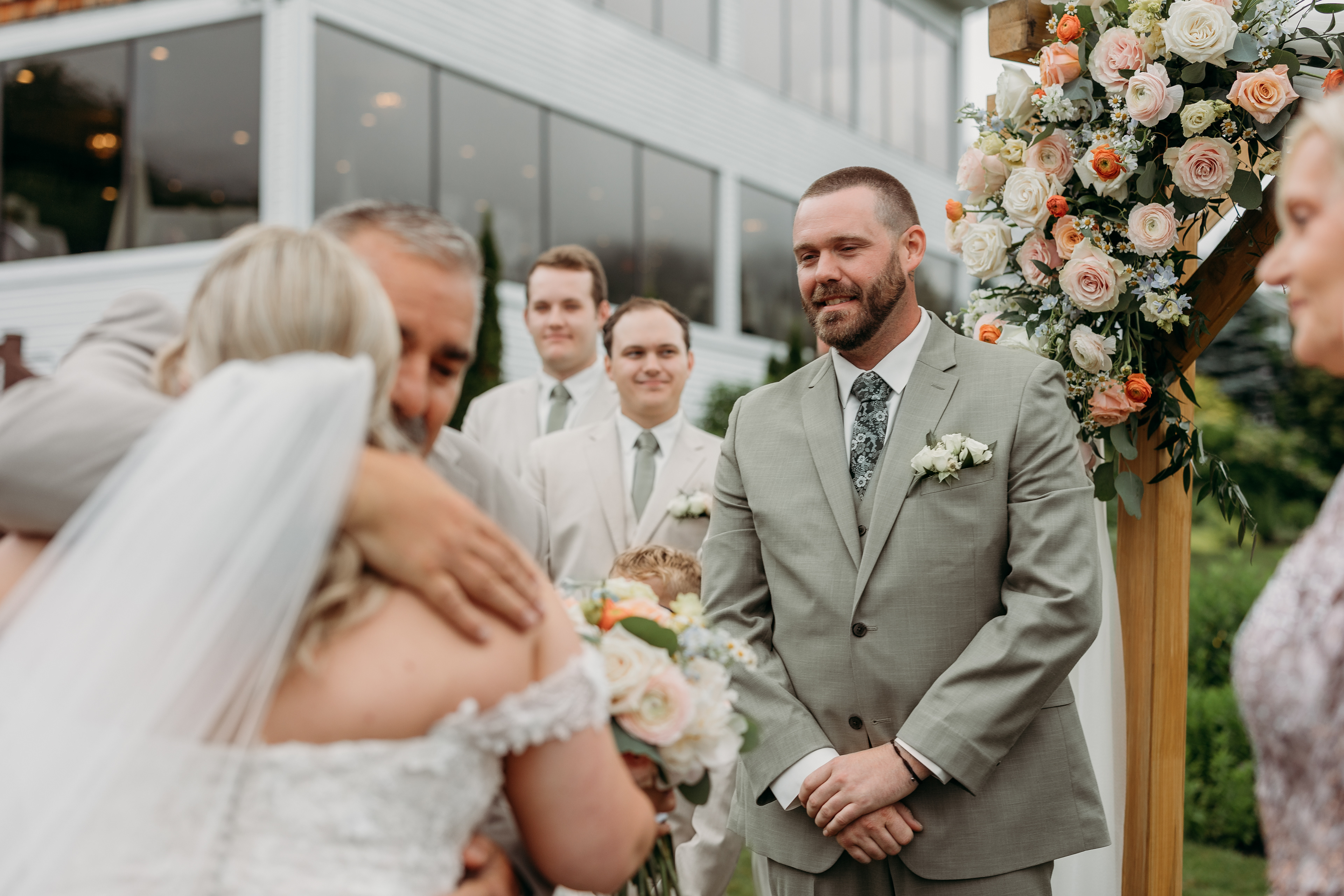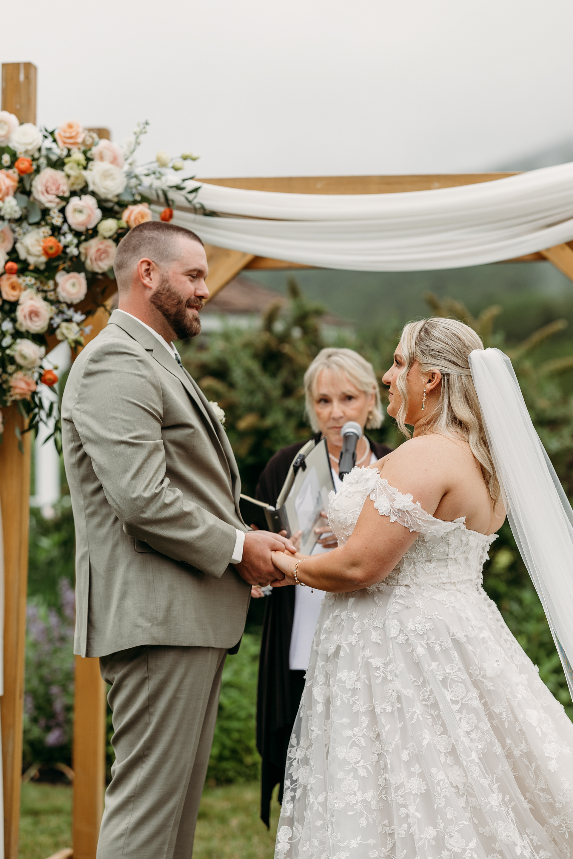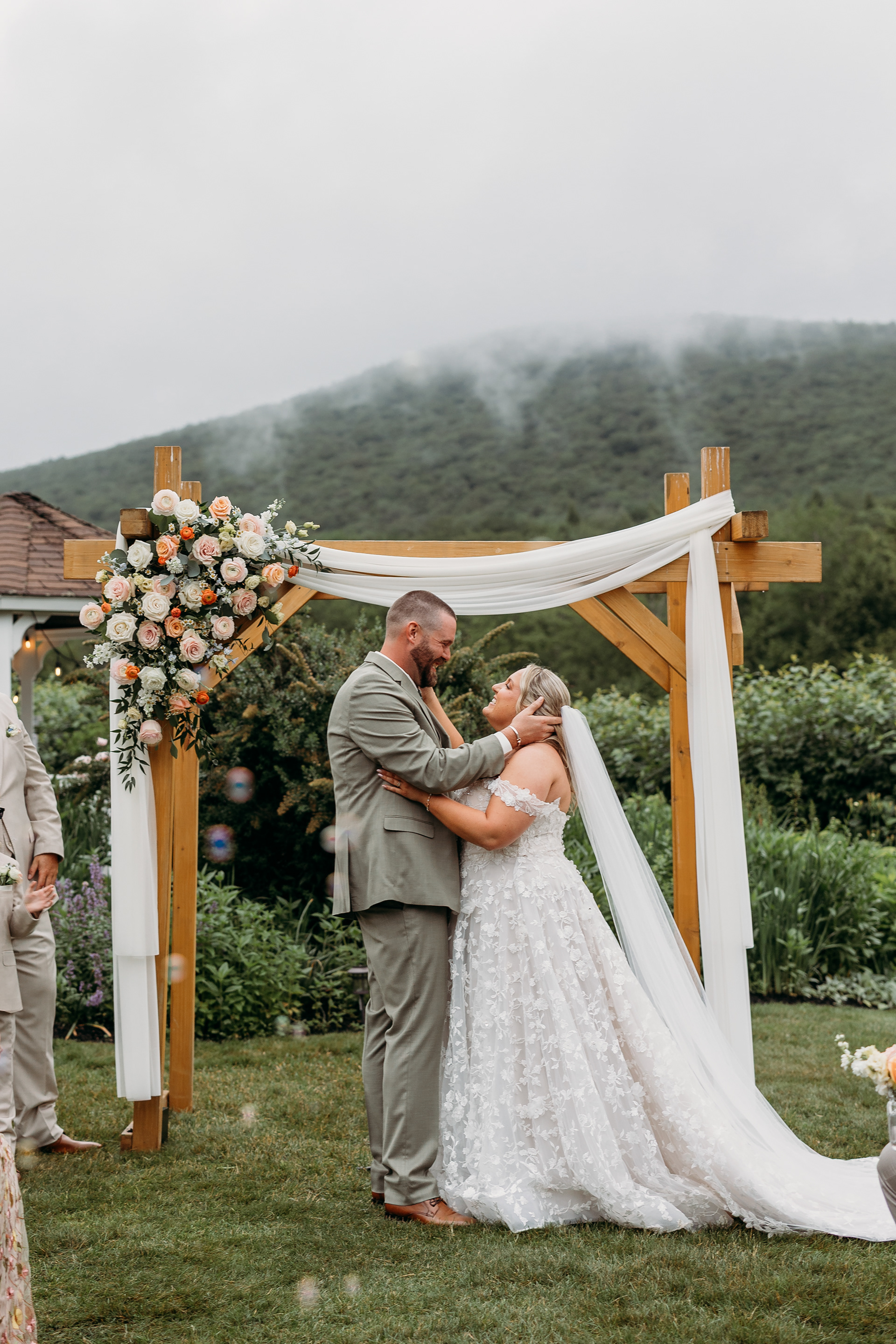Every detail in place — flowers by FERN Floral NH, soft blush tones, and mountain air that felt like magic.