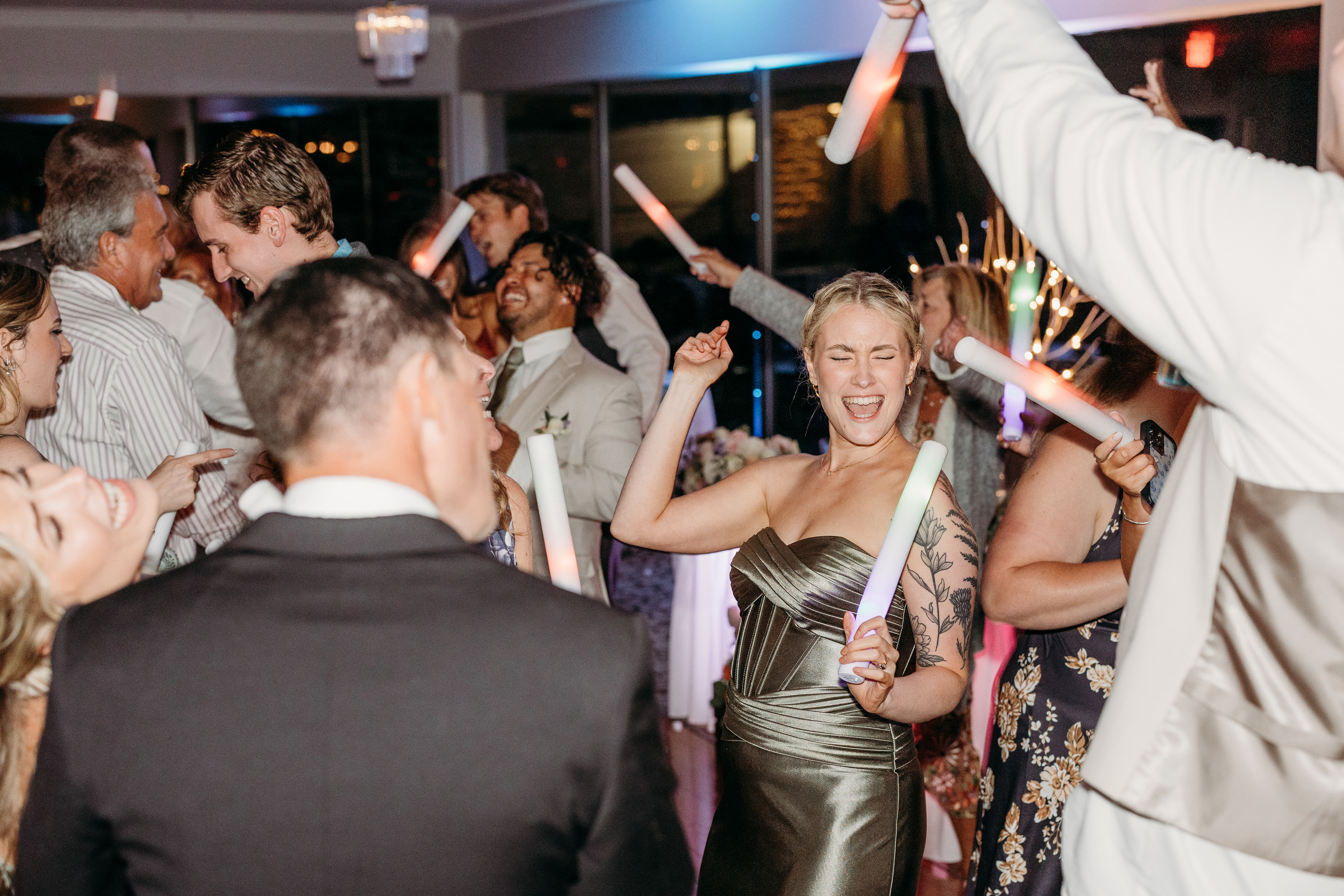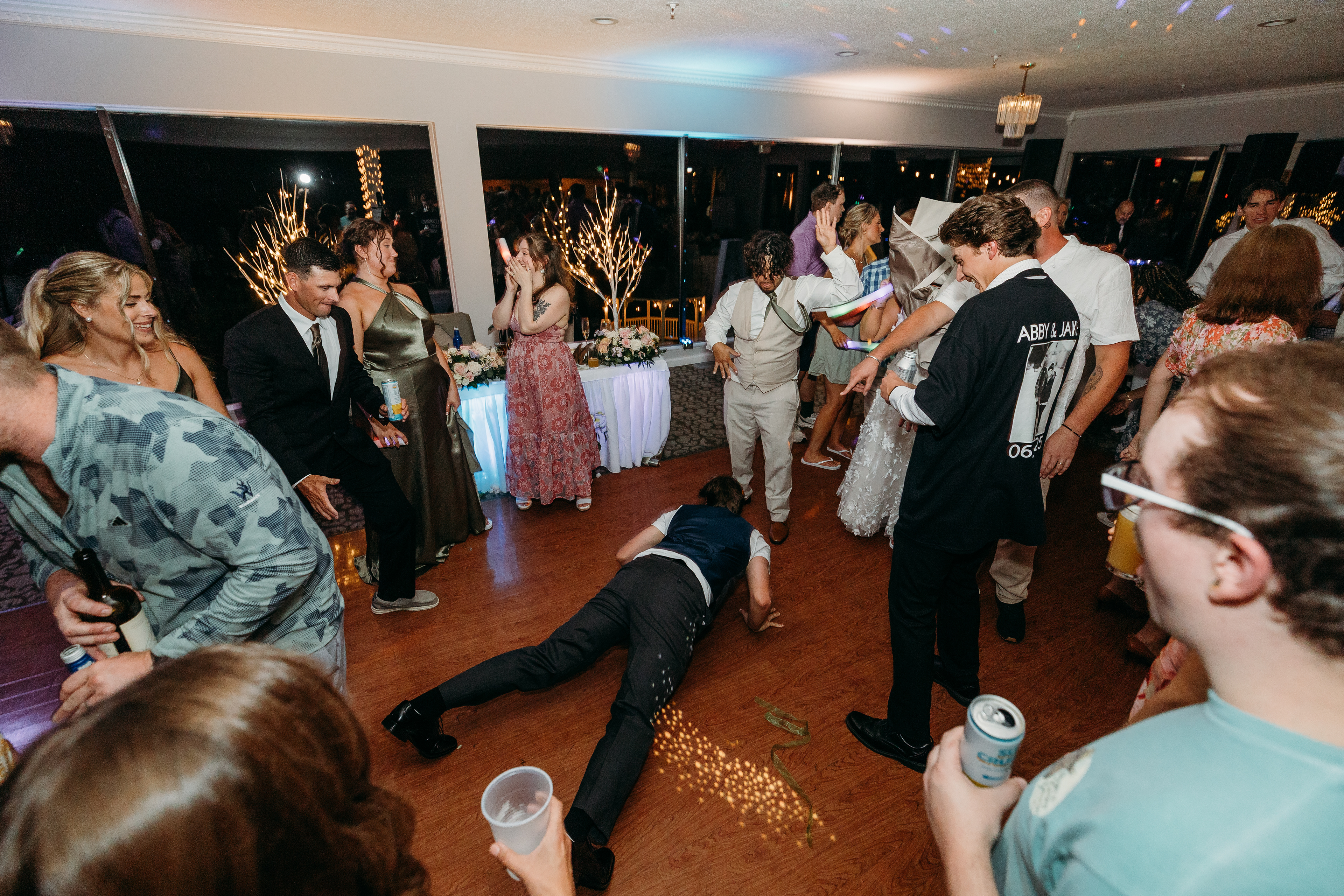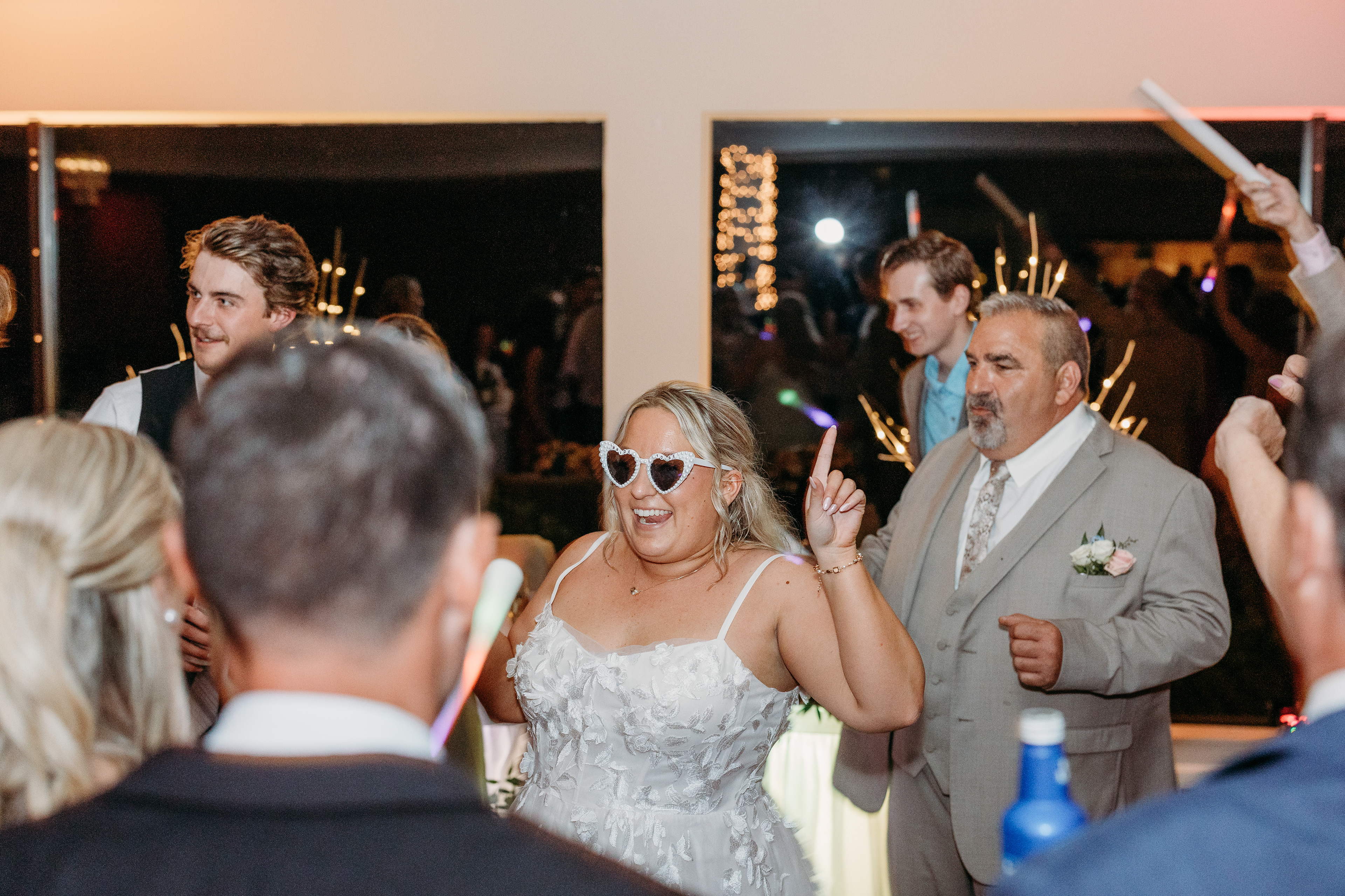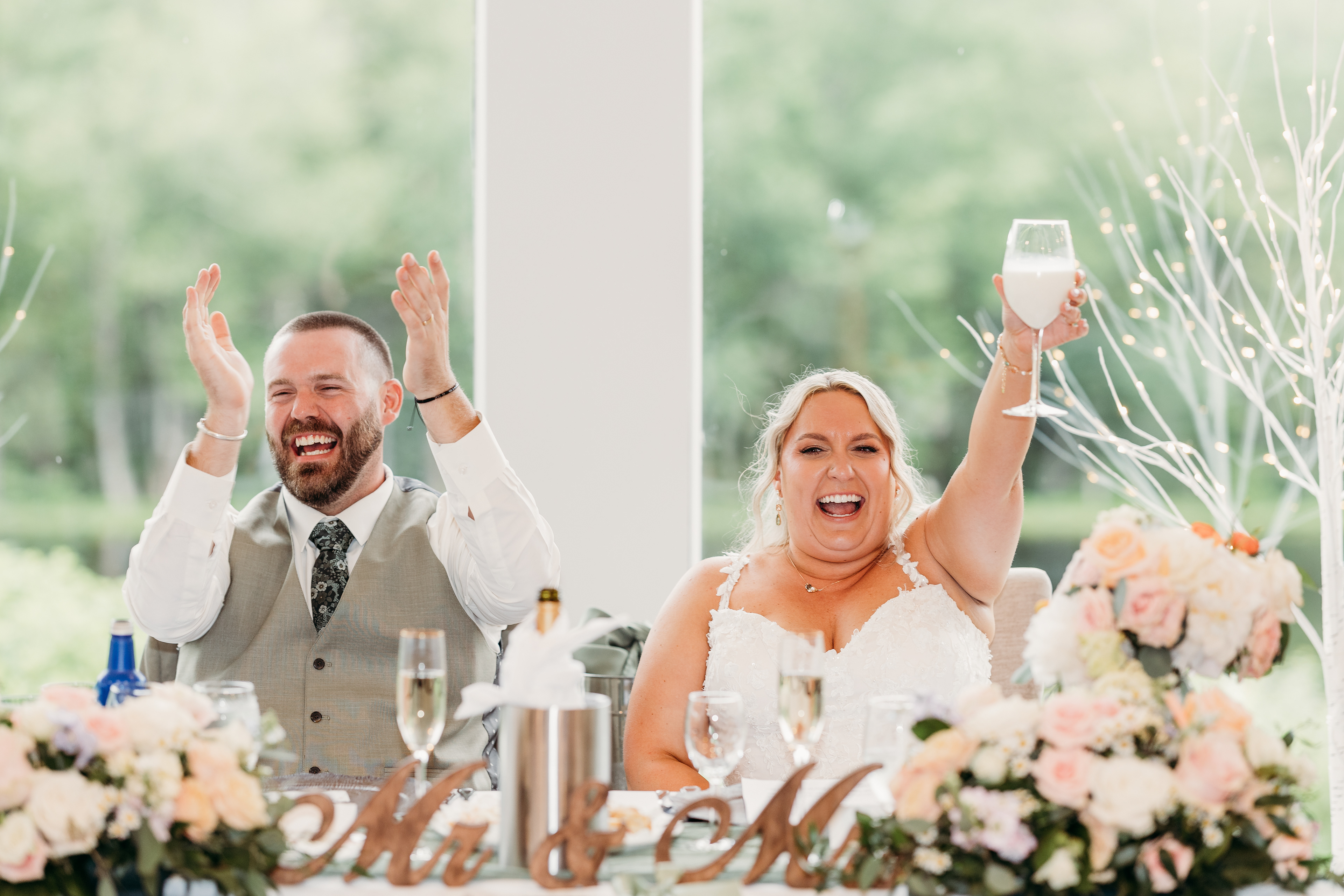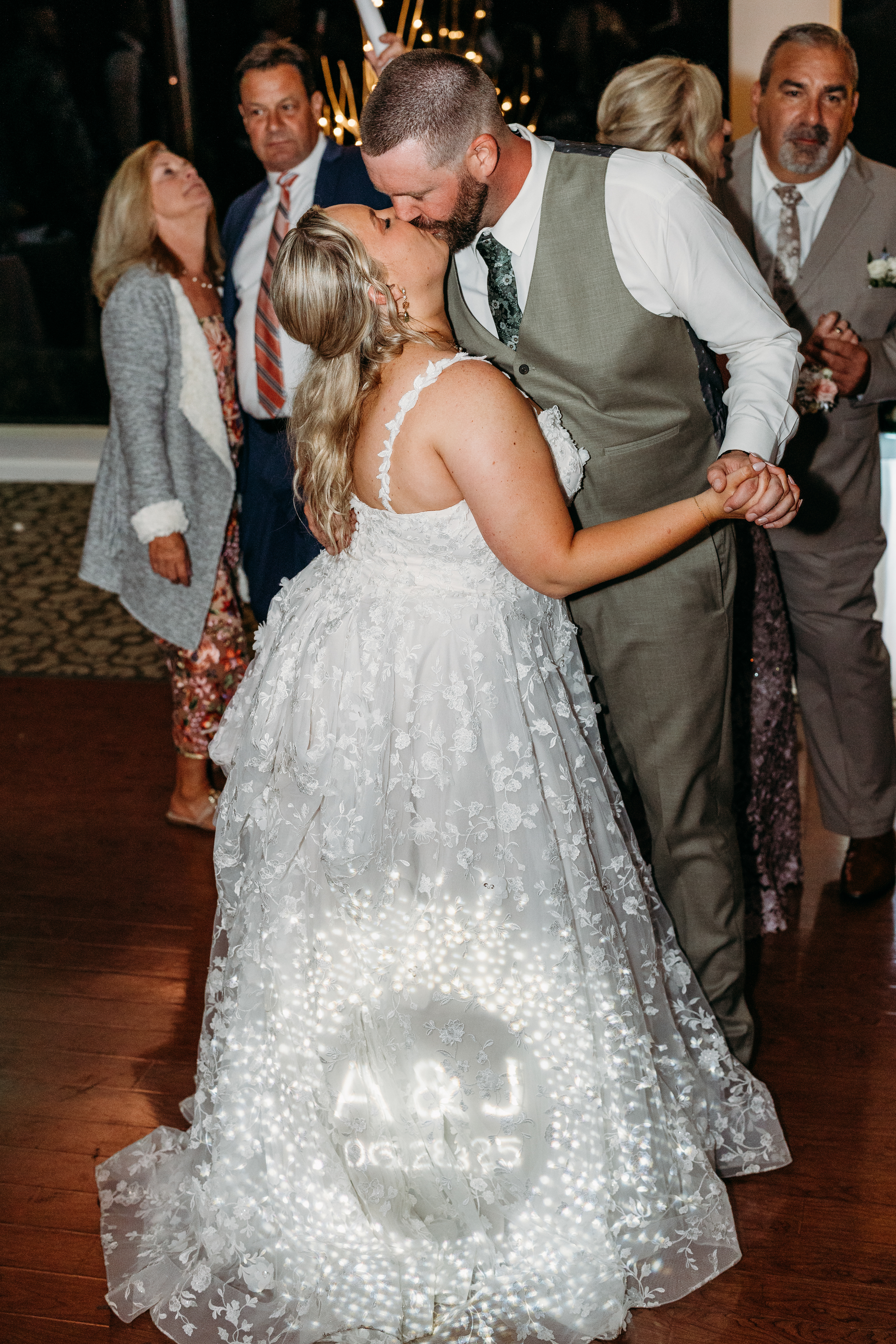 The celebration continued at the Lakeview Reception Hall, where twinkle lights, laughter, and music from Precision Entertainment DJs filled the night. Guests danced, toasted, and celebrated with the couple surrounded by a stunning flower wall backdrop from Love, Emmie Co. — the perfect setting for candid, joy-filled photos.