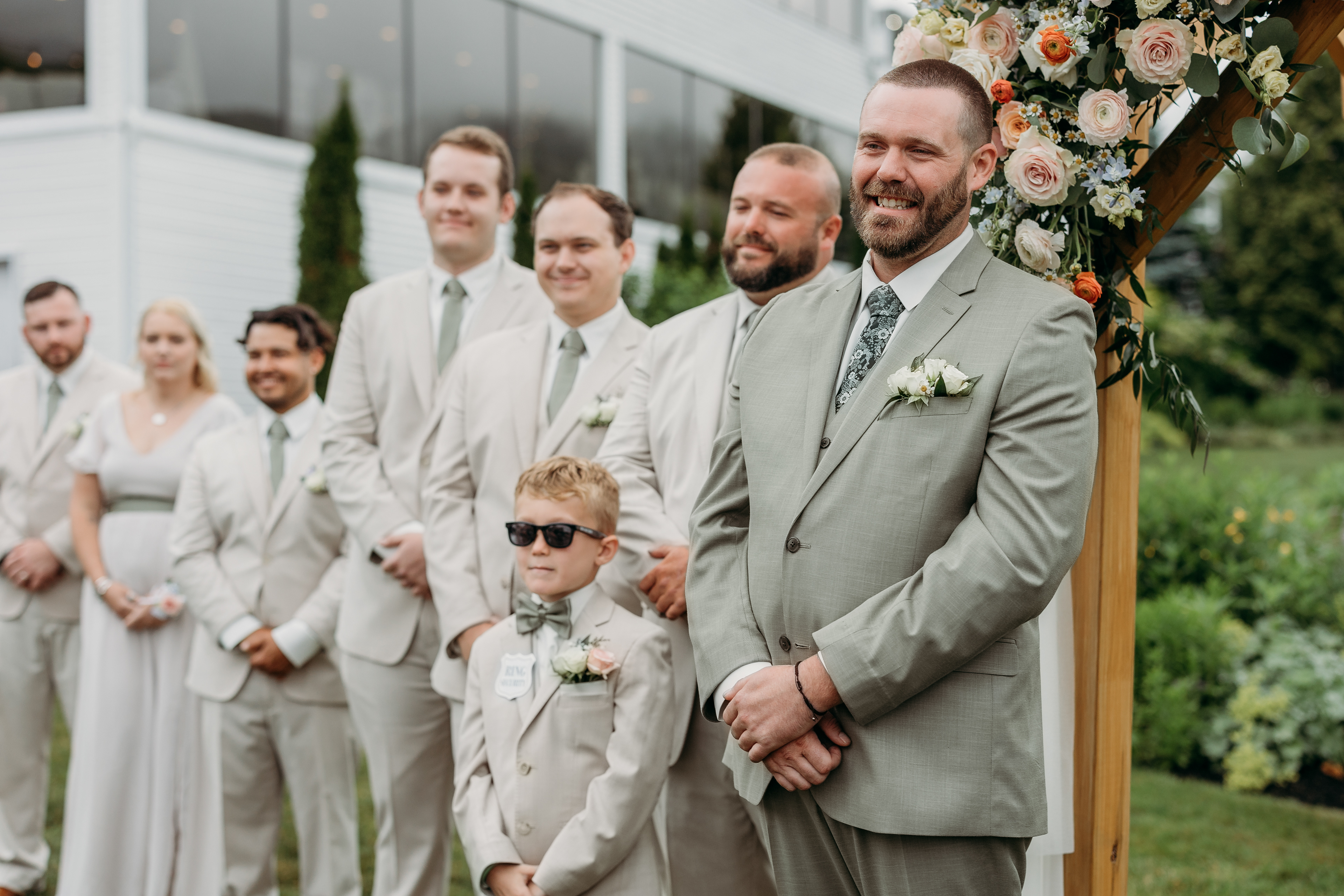 Meanwhile, Jacob and his groomsmen — led by his brother and best man Jason — got ready nearby, their laughter echoing across the resort. The energy was easy and genuine, with ties being fixed, jokes being shared, and a few quiet moments before the big “I do.”