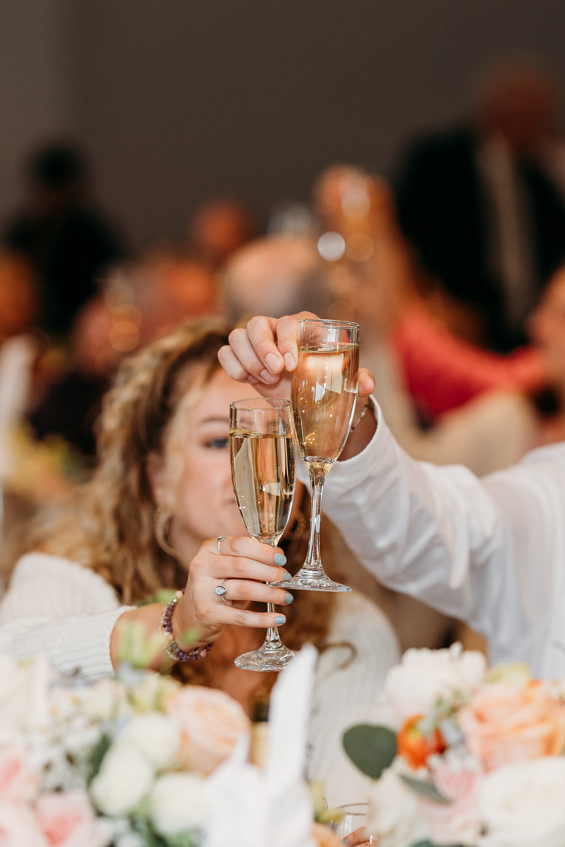 Bridesmaids toasting with mimosas before the first look — joyful moments at a White Mountains wedding.